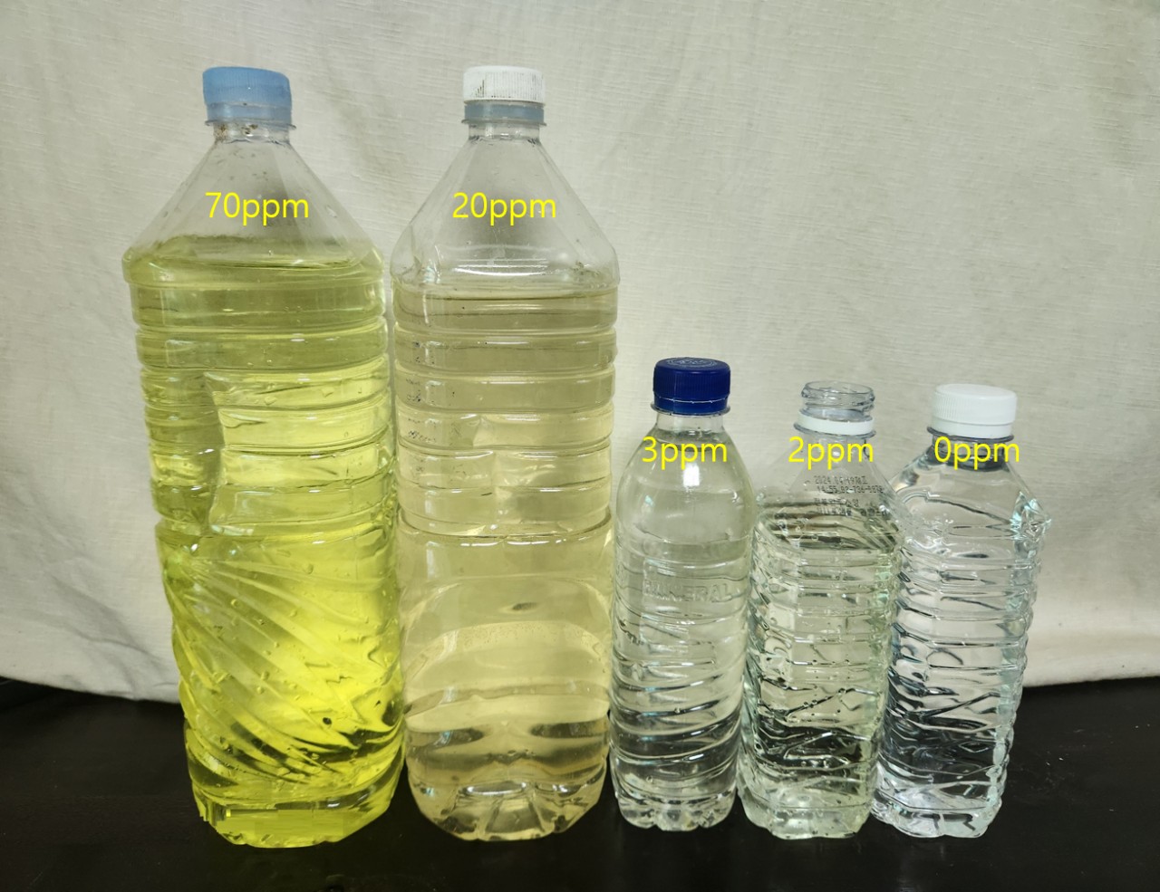 • 황녹색 없으면 이산화염소가 없거나 가짜(음이온 이산화염소, -ClO2).