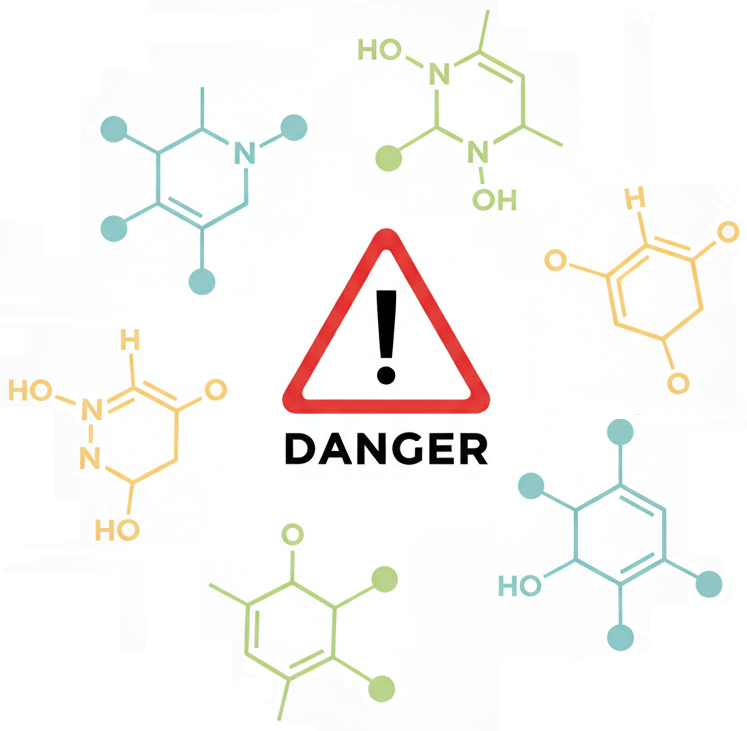 빠르게 분해되어 잔류 독성이 남지 않아 안전하고, 염소계 소독제와 달리, 트리할로메탄(THMs) 등 발암성 소독 부산물을 생성하지 않습니다.