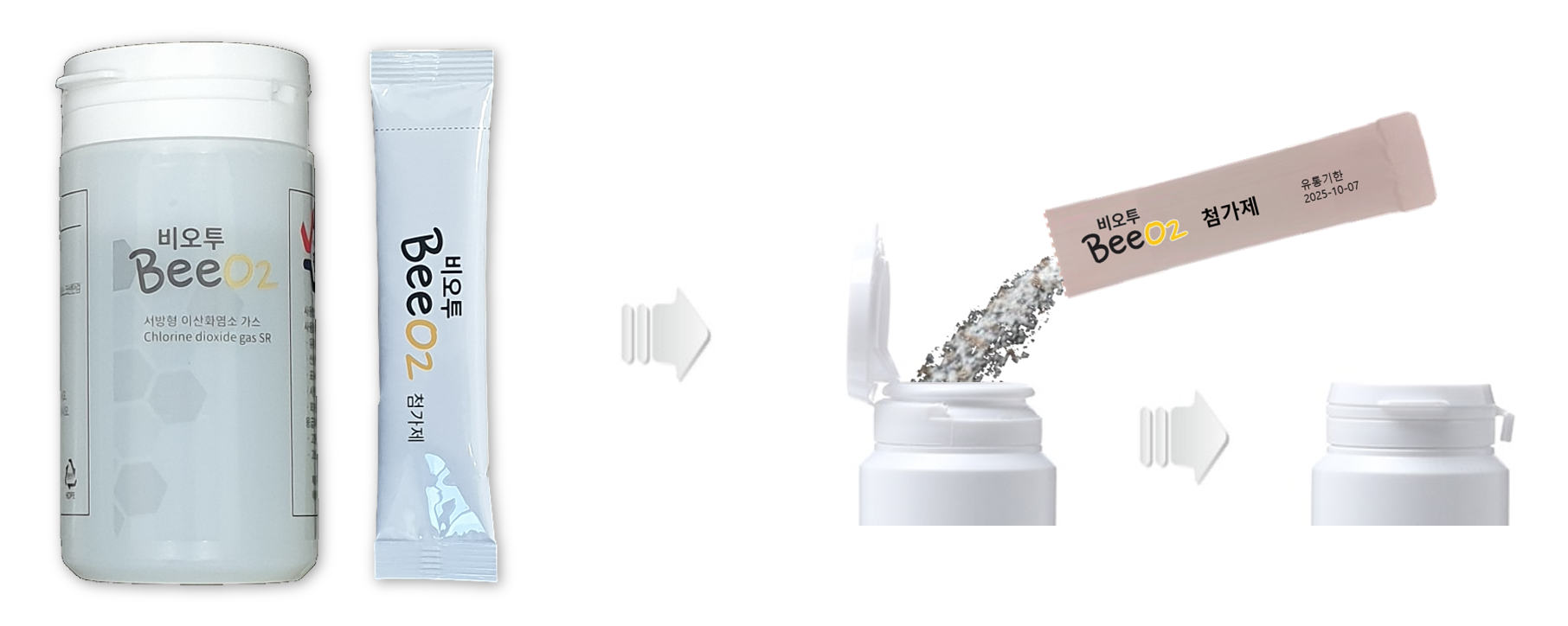 • 비오투(BeeO2)는 이산화염소 가스 지속방출형 제품으로 최대 2,400시간 이상 서방형으로 발생.